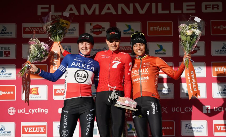 Aniek van Alphen a remporté la deuxième manche de la CDM de cyclo-cross à Flamanville, devant la Française Amandine Fouquenet.