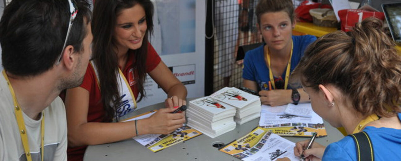 Les Alpes sont derrière nous mais le relief pyrénéen ne saurait tarder à se dresser sous les roues des coureurs du Tour de France et de leurs nombreux suiveurs. Aussi, les Jeunes Reporters du Tour s’activent dans cette perspective en préparant un numéro spécialement dédié au massif dont on fête cette année le centenaire du premier passage du Tour de France, c’était en juillet 1910. Avant cela, voilà un septième numéro à découvrir. Dans « A Notre Tour », nos petits journalistes vous proposent de rencontrer Miss France 2010, de passage sur le Tour le 14 juillet pour fêter son anniversaire. Clin d’œil également à la caravane publicitaire, qui fête quant à elle son 80ème anniversaire. Puis découvrez des sujets sur le métier de commissaire, l’arrivée de Digital parmi les partenaires du Tour et les loisirs des coureurs après la course.