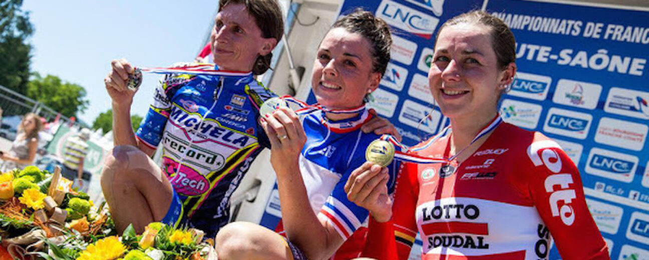 Le dernier tronçon globalement descendant n’inversera pas la hiérarchie qui s’est dessinée au cours des quatorze premiers kilomètres. Au contraire, c’est avec 22 secondes d’avance que Audrey Cordon-Ragot se présente sur la ligne d’arrivée, avant d’enfiler un deuxième maillot tricolore. Derrière Edwige Pitel, 2ème, Elise Delzenne (Lotto-Soudal Ladies) prend la 3ème place. La Nordiste, restée au pied du podium ces trois dernières années, signe un joli retour, elle qui n’a repris la compétition qu’en avril dernier après une fracture du bassin. Le titre Espoirs est revenu à Séverine Eraud (Poitou-Charentes-Futuroscope 86). L’ancienne championne du monde Juniors, 5ème du scratch après avoir fixé le premier véritable chrono de référence, devance celle qui l’avait battue l’an dernier à Chantonnay, Anabelle Dreville (Poitou-Charentes-Futuroscope 86).
