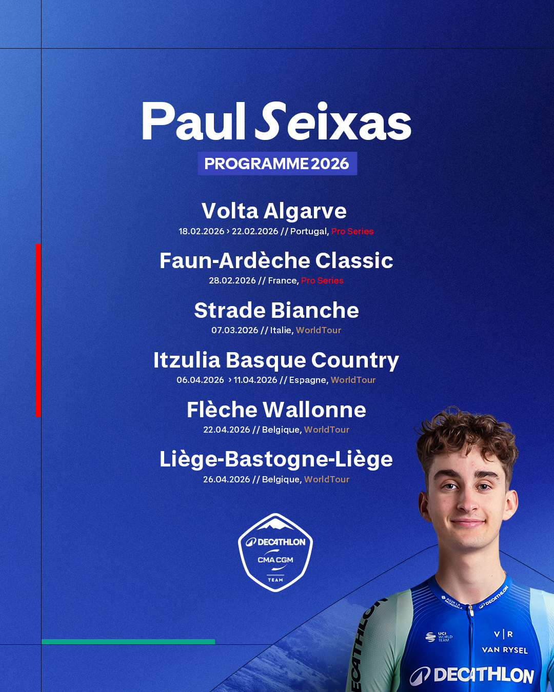 Deux Monuments, La Flèche Wallonne,… On connait le programme du début de saison 2026 de Paul Seixas.