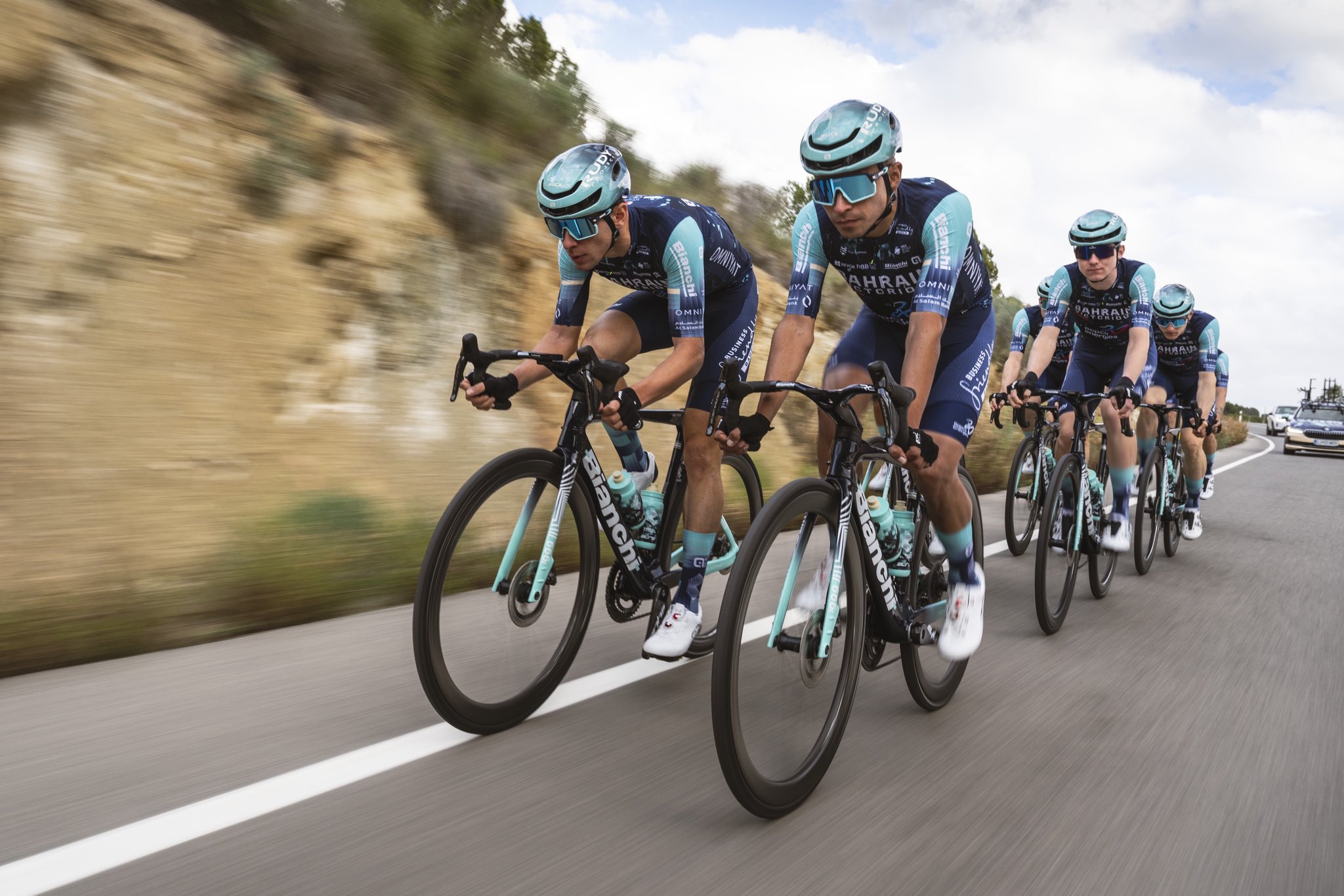 Alé a dévoilé le nouveau maillot de la Bahrain Victorious pour 2026. Son design met en valeur le Celeste emblématique de Bianchi sur les manches, harmonisé avec des tons bleu clair et turquoise inspirés des paysages et des mers environnantes de Bahreïn. Au cœur du maillot trône un bleu marine profond, couleur signature de l’équipe, rehaussé d’un discret « X » célébrant les dix ans de Bahrain Victorious dans le cyclisme professionnel. Bianchi devient partenaire de la Bahrain. Les coureurs auront accès à l’ensemble de la gamme Reparto Corse : Oltre, l’expression ultime de la performance aérodynamique ; Specialissima, le vélo polyvalent ultra-léger nouvelle génération ; Aquila, conçu pour dominer les contre-la-montre ; et Impulso, l’expression la plus pure de l’ADN de compétition Bianchi appliqué au gravel.