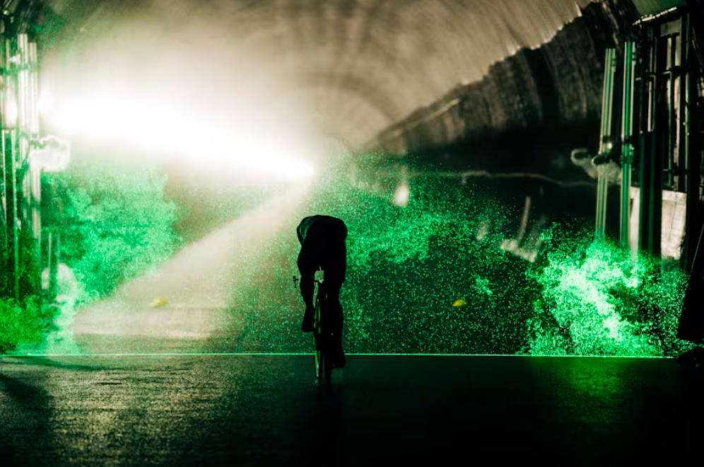 La formation Red Bull Bora-Hansgrohe et Specialized ont mené un test de vélocimétrie par imagerie de particules dans le tunnel de Catesby.