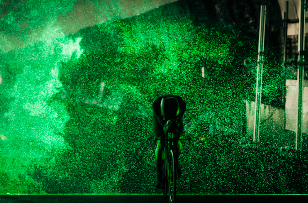 Cela ressemble à de la science-fiction, mais il s’agit d’une recherche de pointe : au sein du centre de recherche aérospatiale de Catesby – un ancien tunnel ferroviaire en Angleterre – Red Bull Bora-Hansgrohe et Specialized, en collaboration avec le spécialiste des mesures LaVision, ont mené un test de vélocimétrie par imagerie de particules, une technique jusqu’alors réservée à la Formule 1.