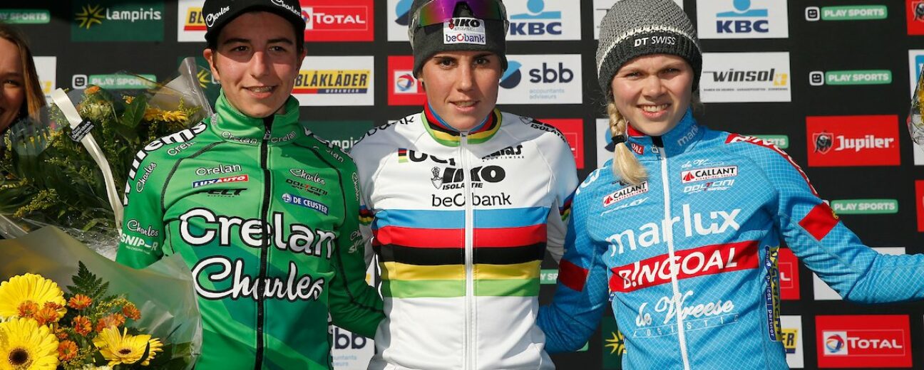 Superprestige Noordzeecross Middelkerke. Samedi en Belgique s’est déroulé le Superprestige Noordzeecross Middelkerke et la championne du monde ajoute un nouveau succès à son palmarès. Elle s’impose en 40’23’’ devant la néerlandaise Maud Kaptheijns (Crelan Charles) et la jeune belge Laura Verdonschot (Marlux-Bingoal). La française Pauline Delhaye termine à la 16ème place. Chez les hommes, Mathieu Van der Poel (Corendon Circus) ramène un énième bouquet de fleurs à la maison. Il l’emporte après 1h00’17’’ de course devant les belges Tim Merlier (Crelan Charles) et Michael Vanthourenhout (Marlux Bingoal).