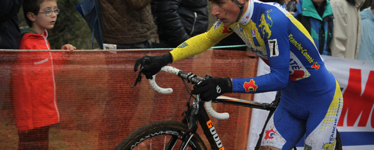 Rien ni personne ne pouvait contester à Fabien Doubey (Franche-Comté) son statut de favori du Championnat de France Espoirs, en dépit de son dossard numéro 7. C’est sûr de sa force que le Franc-Comtois s’avance sur le circuit de Coët Roz où la pluie s’est stoppée temporairement dans le courant de l’après-midi avant une journée annoncée plus clémente demain. Les stigmates de sa chute à Lanarvily qui l’a empêché d’inscrire son nom au palmarès de la Coupe de France sont derrière lui. En un mois celui qui a déjà porté le maillot tricolore chez les Juniors en 2012 a pu se remobiliser. Sa 2ème place à Lutterbach derrière Fabien Canal le week-end dernier a bien montré que Fabien Doubey s’est construit en vue de cet objectif. Comme à Sisteron, c’est un formidable solo, un véritable cavalier seul qu’il nous réserve à Pontchâteau.