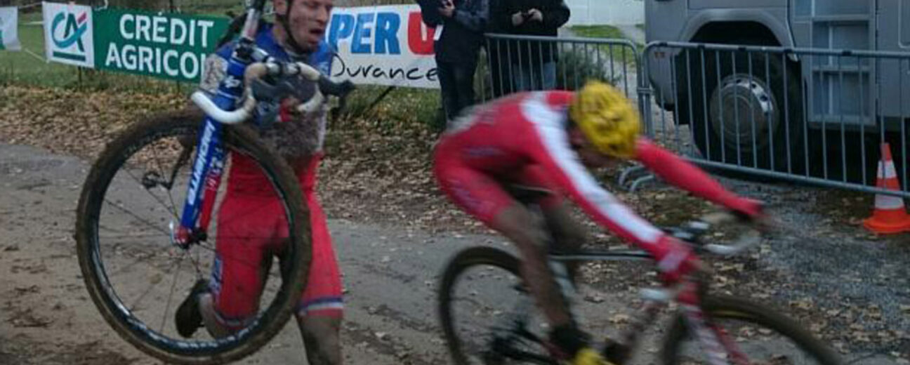 En cyclo-cross plus que n’importe quelle autre discipline, une victoire ne tient qu’à peu de choses. Les ennuis mécaniques font partie intégrante de ce sport hivernal et peuvent vous faire retomber alors que la victoire vous est promise. Une crevaison, un mauvais passage de vitesse, une chute, Francis Mourey (FDJ.fr) en a connu tout au long de sa longue carrière. Mais jamais sa frustration ne pourra être aussi grande qu’aujourd’hui sur cette deuxième manche de Coupe de France à Sisteron qui fera date dans le petit monde du cyclo-cross français. Il est vrai que le champion de France n’abordait déjà pas ce deuxième volet du grand trophée national dans les meilleures dispositions. Battu trois fois depuis le début du mois par les représentants de la nouvelle génération, le Franc-Comtois devait profiter de l’événement pour remettre les points sur les « i ».