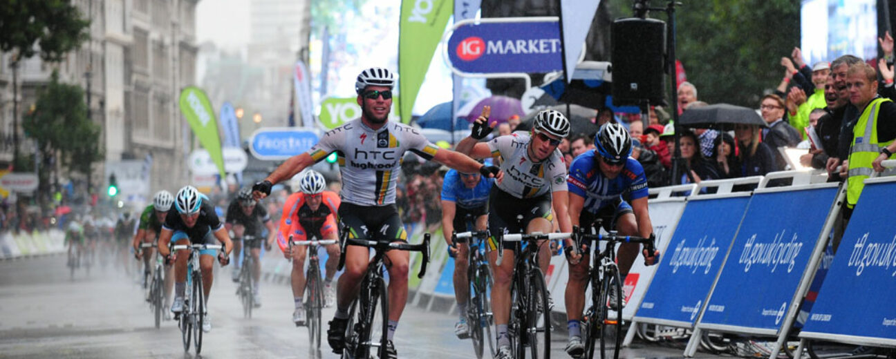 Pas facile de garder la mainmise sur le peloton dans une course dessinée sur un circuit de 8,8 kilomètres à parcourir dix fois. Les attaques seront continues du baisser du drapeau au franchissement de la ligne d’arrivée tracée à Whitehall. Sur le superbe tracé londonien qui passe par Big Ben, Downing Street et Trafalgar Square, on voit notamment Kristian House (Rapha Condor-Sharp) et Ronan McLaughlin (An Post-Sean Kelly) mener l’échappée la plus sérieuse, mais le duo est repris sous l’impulsion d’un peloton conjointement mené par les équipes Rabobank et HTC-Highroad. La pluie qui se met à tomber fort à deux tours de l’arrivée complique le final. C’est pourtant bien au sprint que les coureurs en finiront, et même s’il se refuse à prendre le moindre risque à une semaine des Mondiaux, Mark Cavendish se présente en tête en quête d’un deuxième dimanche victorieux, qu’il obtient sans aucun problème, avec la bénédiction de son poisson-pilote Mark Renshaw, qui prend pour sa part la 2ème place. Vainqueur deux dimanches de suite, Cavendish peut maintenant filer vers Copenhague pour vérifier une certaine maxime qui dit… « jamais deux sans trois ».
