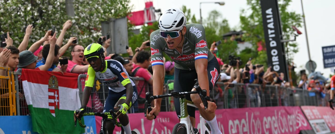 Mathieu Van der Poel (Alpecin-Fenix) s’est imposé lors de la première étape du Tour d’Italie. Dans un sprint en bosse, le Néerlandais a devancé Beniam Girmay (Intermarché – Wanty – Gobert) et Pello Bilbao (Bahrain Victorious). Caleb Ewan (Lotto Soudal) a chuté lors de ce sprint après avoir touché la roue de Girmay. Van der Poel s’empare du premier maillot rose de leader.