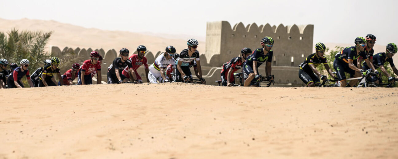 Remplaçant le défunt Tour de Pékin, le Tour d’Abu Dhabi offre à ceux qui souhaitent jouer les prolongations leur dose d’exotisme. La dernière épreuve en date créée dans le golfe persique aurait pu venir gonfler le calendrier du mois de février aux côtés des Tours du Qatar, d’Oman, et de Dubaï. Tranchant avec ses prédécesseurs qui font office de référence en terme de préparation en début d’année, le Tour d’Abu Dhabi se déroule à l’autre bout de la saison. Les ingrédients ne diffèrent que très peu, du moins pour cette première étape : des longues routes rectilignes et plates à travers le désert malgré un dénivelé annoncé de 1200 mètres et surtout une chaleur accablante dépassant les 40 degrés. Peut-être sont-ce là des conditions semblables à celles que l’on trouvera dans un an quand Doha accueillera les prochains Championnats du Monde.