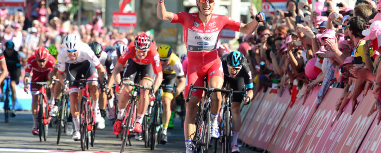 Pensant encore le coup jouable à 10 kilomètres de l’arrivée, Johann Van Zyl décidait d’insister seul pour défendre la petite minute dont disposait encore l’échappée. Le Sud-Africain, les avant-bras posés sur les cocottes à la recherche d’une position aérodynamique, allait tenir jusqu’à 2 kilomètres du but avant de s’incliner à bout de souffle. Et de laisser les sprinteurs se mesurer dans les derniers hectomètres. Cette fois Arnaud Démare (FDJ) se faisait discret, lui dont la formation FDJ, épatante hier, avait été décapitée par une chute dans le final. En revanche les Etixx-Quick Step étaient au rendez-vous, et Marcel Kittel tout en rouge (la couleur du leader du classement par points) n’avait plus qu’à répéter son sprint victorieux d’hier. N’en déplaise aux finisseurs italiens Elia Viviani (Team Sky) et Giacomo Nizzolo (Trek-Segafredo), 2ème et 3ème. Avec la même puissance qui en fait le sprinteur invulnérable du moment, l’Allemand s’en allait ainsi conquérir étape et maillot rose de leader.