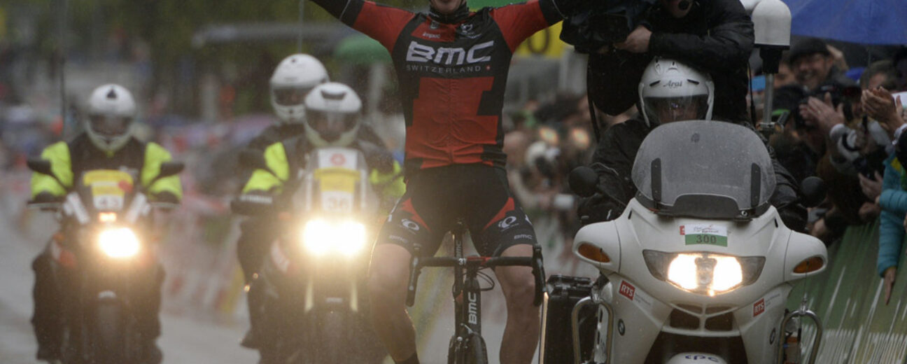Les nuages gris qui se sont accrochés aux montagnes du Jura suisse déversent d’abondantes précipitations sur le peloton du Tour de Romandie aujourd’hui au départ de la Neuveville. Des conditions épouvantables qui tombent à un bien mauvais moment, à 24 heures de la grande explication attendue à Champex Lac. Le parcours a beau être encore hyper vallonné, ce n’est pas aujourd’hui que les grands favoris qui se sont un peu activés hier vont en découdre. Non, au vu de son relief, cette 4ème étape semblait être du tout cuit pour Michael Albasini (Orica-GreenEdge), vainqueur ces deux derniers jours et lauréat à Fribourg il y a douze mois. Le Maillot Jaune est scruté, épié, surveillé sur un parcours lui convenant à nouveau à merveille. Mais ce n’est finalement pas lui qui franchit la ligne le premier sur une route totalement détrempée.