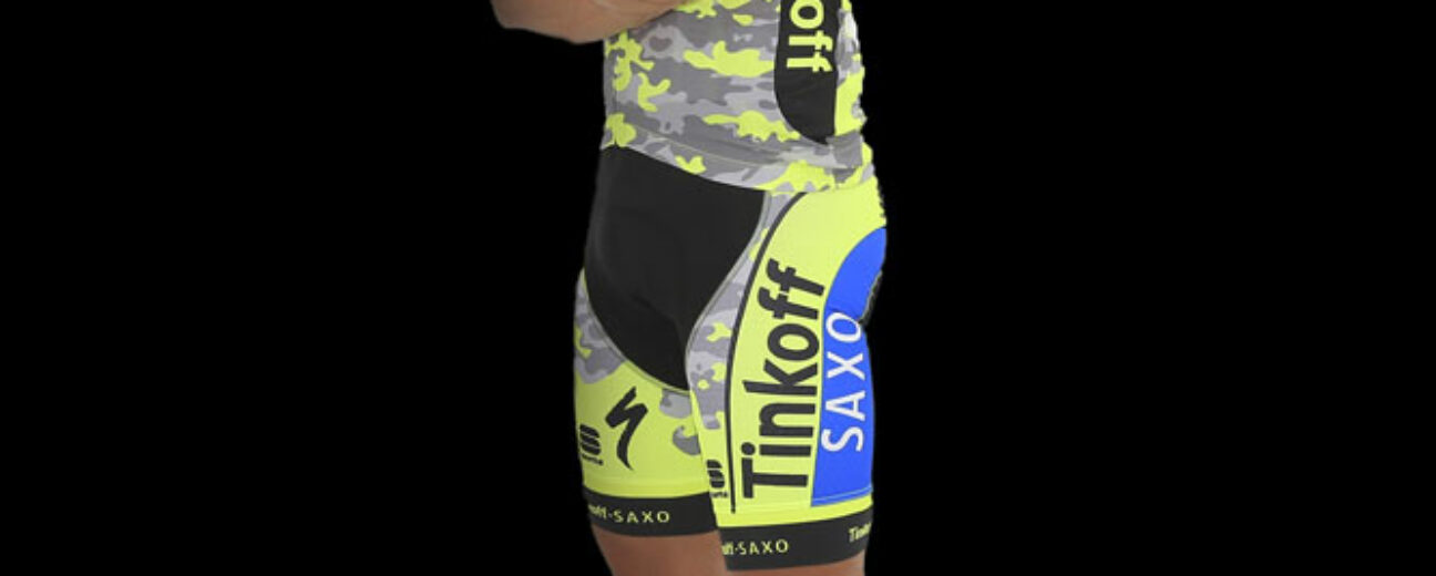 Tinkoff-Saxo. Alberto Contador et ses coéquipiers de la formation Tinkoff-Saxo porteront du 4 au 26 juillet, sur les routes du Tour de France, un maillot collector qui reprendra le thème de la tunique portée à l’entraînement par les coureurs du groupe sportif russe. La société Sportful, qui conçoit l’équipement textile de l’équipe, a en effet dévoilé un maillot unique s’inspirant du camouflage de celui utilisé hors compétition. Compte tenu de l’immense succès rencontré par cette tunique d’ores et déjà adoptée par de nombreux cyclistes à travers le monde, il semblait naturel que certains de ses éléments soient incorporés sur le kit du Tour de France, dont les traditionnelles couleurs jaunes et bleues se verront renforcées par du gris sous la forme de motifs de camouflage, et du noir qui prendra une place plus importante sur le maillot.