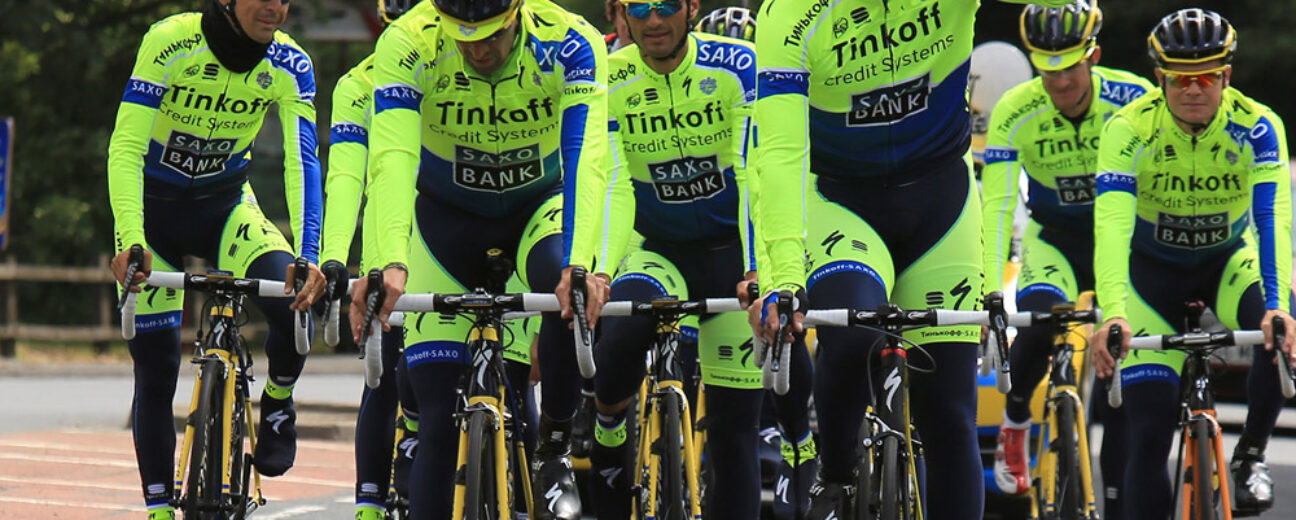 Tinkoff-Saxo. En dévoilant un maillot à dominante jaune, l’équipe Tinkoff-Saxo savait en début de saison qu’il lui faudrait modifier ses codes-couleurs sur la Grande Boucle comme le fit l’équipe ONCE en son temps. L’équipe danoise n’a pas opté pour le rose, mais pour un maillot… fluo, mais dont le jaune est nettement moins prononcé, à mi-chemin entre le jaune et le vert. Les hommes de Bjarne Riis pourront retrouver leurs couleurs habituelles à l’issue du Tour de France. Mais personne ne doute qu’Alberto Contador ne serait pas contre le fait de porter à nouveau du jaune avant le 27 juillet…