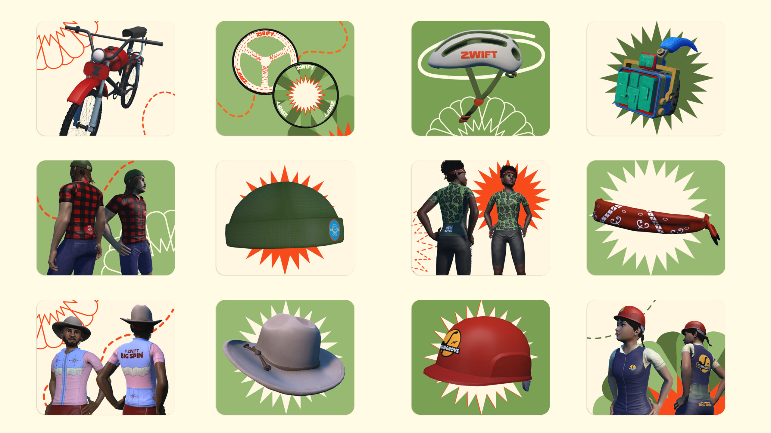 Il n’y a aucune limite au nombre de fois où les Zwifteurs peuvent compléter les étapes du Big Spin pour tenter de remporter tous les prix. Autre nouveauté : des roues mystères sont cachées à travers Watopia. Les Zwifteurs peuvent partir à la recherche de ces roues dissimulées, signalées par des coffres au trésor ; elles permettent de débloquer des récompenses issues des précédentes éditions du Big Spin. À partir du 27 février, huit roues mystères seront à découvrir pour les Zwifteurs les plus intrépides en quête d’aventure.