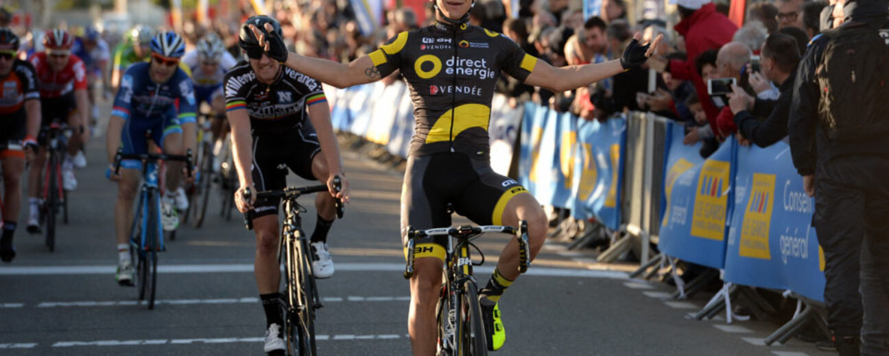 « C’est classe, c’est harmonieux, les couleurs se marient bien : de tous les maillots qu’il m’a été donné de porter, je le mets volontiers sur le podium ! » Les mots de Sylvain Chavanel projetés sur l’écran géant quelques secondes avant le lever de rideau sur un secret précieusement gardé, le 15 janvier dernier sur les Champs-Elysées, avaient donné le ton avant la découverte de la première tunique aux couleurs de Direct Energie. Quelques instants plus tard, c’est toute l’équipe vendéenne qui déambulait vêtue de ce maillot qui a fait mouche tout de suite. En course avec les neuf victoires acquises en deux mois par Adrien Petit, Bryan Coquard, Sylvain Chavanel et Thomas Voeckler. Et aux yeux des supporters puisque c’est ce maillot qui reçoit aujourd’hui le titre de Maillot Pro 2016 au terme d’une élection organisée sous forme de tournoi.