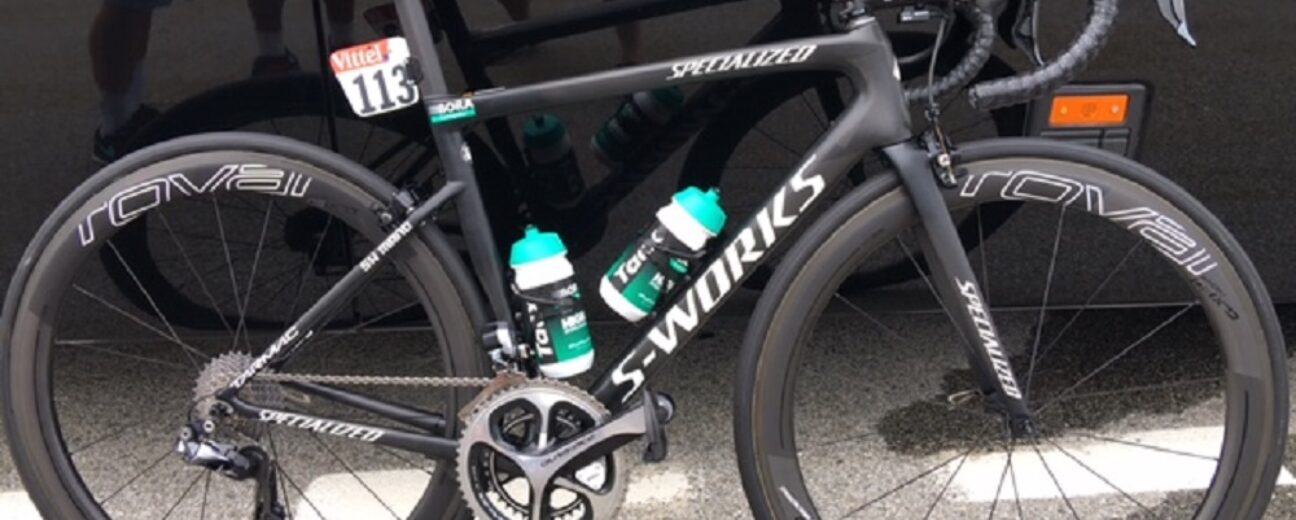 Emanuel Buchmann, le grimpeur allemand de la formation Bora-Hansgrohe, utilise un vélo de taille 54. Celui-ci est pensé spécifiquement pour les étapes de montagne et son poids est de 6,83 kilos une fois tous les éléments installés.