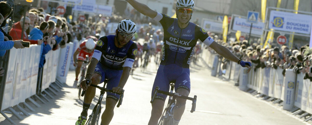 Ce sont les néo-pros d’Etixx-Quick Step qui prennent l’ascendant dans la dernière ligne droite, que conclut en tête l’Italien Davide Martinelli devant son coéquipier colombien Fernando Gaviria. Une première victoire pro pour le fiston de Giuseppe Martinelli, que l’on connaissait davantage pour ses qualités de rouleur (2ème du Championnat d’Europe Espoirs du chrono en 2014, 3ème du Chrono Champenois en 2015) que pour ses facultés à battre un peloton tout entier au sprint. Mais il faut croire que le jeune homme de 22 ans bénéficie de l’effet d’entraînement qui semble avoir gagné la formation Etixx-Quick Step, dont cinq des recrues hivernales ont déjà accroché une victoire cette saison !