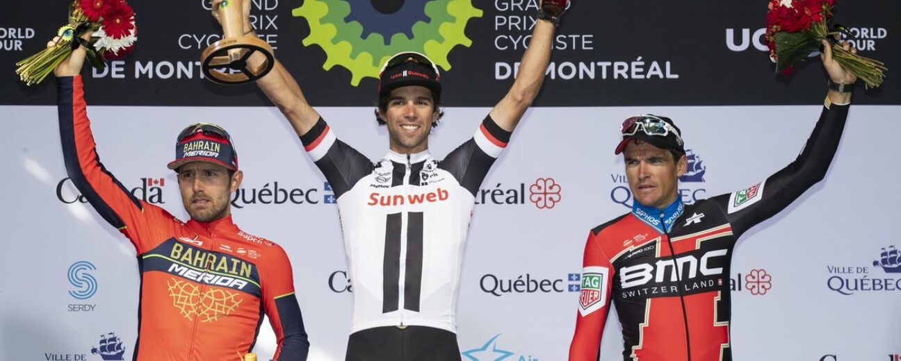 Sous l’impulsion de la Lotto-Soudal le rythme s’accélère à trois tours de l’arrivée et l’écart passe autour des deux minutes pour les quatre hommes de tête. Dans l’avant dernier tour Jan Polanc (UAE Emirates) et Matej Mohoric (Bahrain Merida) opèrent la jonction avec le quatuor. Puis c’est au tour de Sep Vanmarcke (EF Education First), Gregor Mühlberger (Bora Hansgrohe) et Janse Van Rensburg de faire le jump. Dans la côte Camilien-Houde Mohoric, Polanc et Muhlberger s’isolent en tête. Le trio se fera reprendre au début du dernier tour, et au même moment Tim Wellens (Lotto Soudal), James Knox (Quick Step Floors) et Jakob Fuglsang (Astana) jètent leur dernière force et possèdent 15 secondes d’avance sur le peloton, avant de se faire revoir à 6 kilomètres du but. Le jeune Benoit Cosnefroy (AG2R La Mondiale) aura tenté de partir seul à 3 kilomètres de l’arrivée, en vain. C’est donc au sprint que s’est joué la victoire et l’Australien Michael Matthews (Sunweb) double la mise, après avoir remporté le Grand-Prix Québec deux jours plus tôt. Il devance l’Italien Sonny Colbrelli (Bahrain Merida) et le Belge Greg Van Avermaet (BMC). Les Bretons Valentin Madouas et David Gaudu (Groupama FDJ) terminent dans le top 20, à la 12ème et 17ème place respectivement.