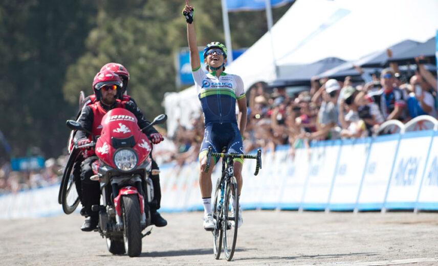 Tour de Californie # 5. Sorti à 25 kilomètres de l'arrivée, Taylor Phinney réalise un numéro pour s'imposer sur une étape disputée sous des températures extrêmes.