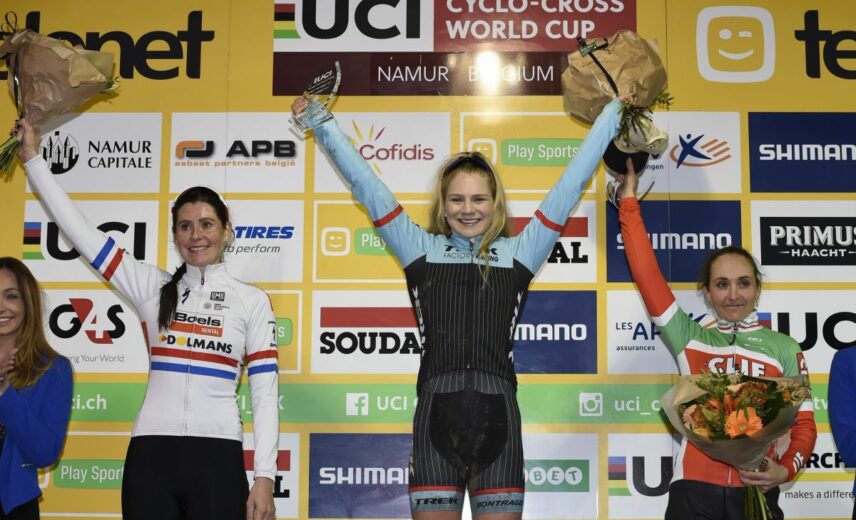 Sanne Cant et Mathieu Van der Poel s'imposent une nouvelle fois sur une manche du DVV Trofee, lors du Scheldecross à Antwerpen, en Belgique. Compton et Van Aert sont deuxièmes, Wyman et Sweeck terminent à la troisième place.