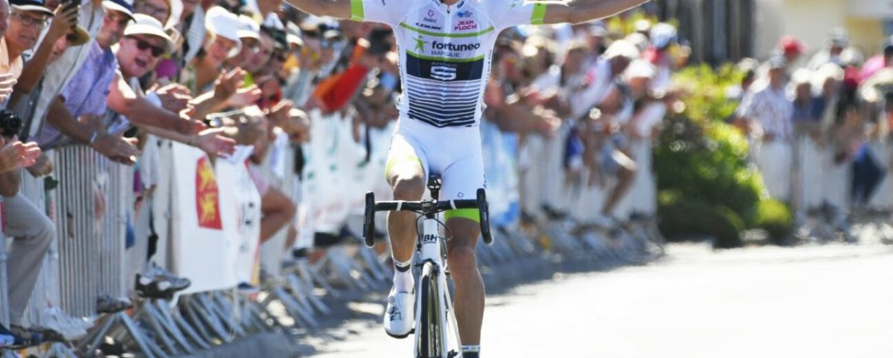 Une seule victoire. C’était le maigre bilan de la formation Fortuneo-Samsic depuis le début de la saison. Pourtant auteur d’un joli coup lors du mercato il y a un an en recrutant Warren Barguil, qui sortait à pois du Tour de France et fort de deux étapes remportées, l’équipe bretonne n’a pas réussi à profiter de l’arrivée de l’ancien de Sunweb. Ne souhaitons donc pas la même réussite à André Greipel, le gorille allemand, qui se pointera dans l’ouest de la France en 2018. Mais ceci est une autre histoire, et c’est plutôt sur celle établie ce jour par Pierre-Luc Périchon (Fortuneo-Samsic) qu’il faut s’attarder, tant le bressan a été acteur de la journée, en plus de ramener en fin d’après-midi le bouquet de vainqueur.
