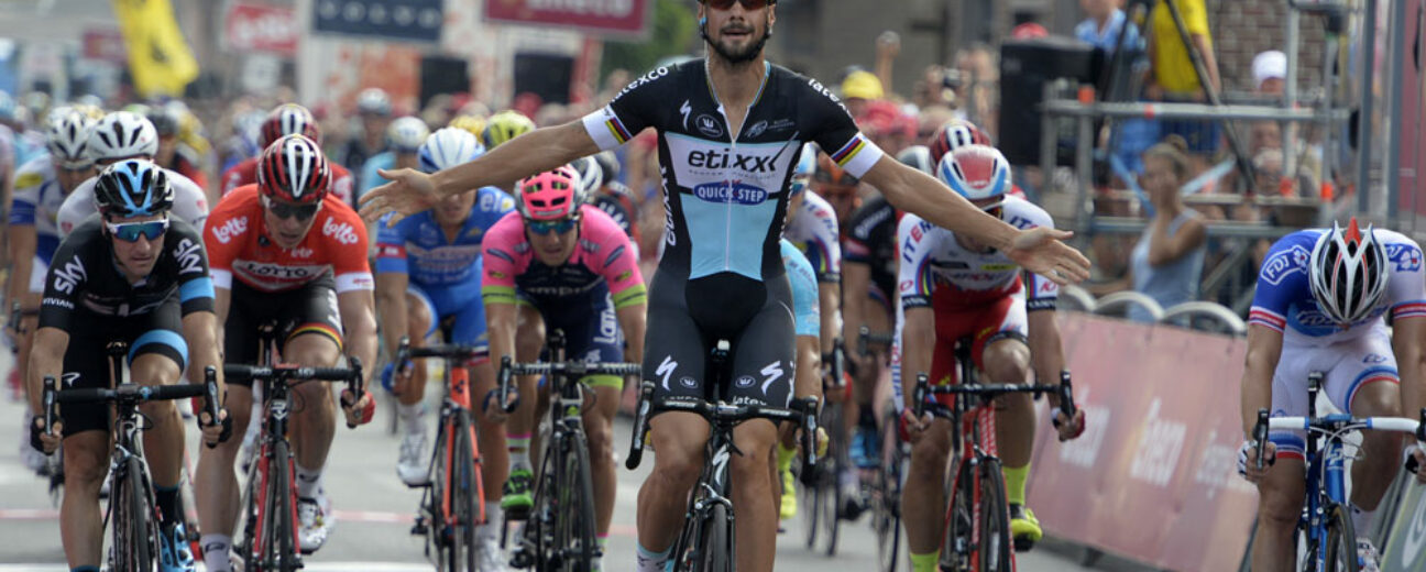 C’est Arnaud Démare (FDJ) qui semble le plus enclun à jouer les opportunistes. Se glissant dans un trou de souris, le Picard ancien champion du monde Espoirs détale à quelques hectomètres de la ligne, se jetant lancé en direction de la ligne d’arrivée. Un temps surpris par la vitesse à laquelle le passe Démare, Tom Boonen (Etixx-Quick Step) réagit rapidement, emboîte le pas au sprinteur français avant de s’en dégager de la roue arrière pour passer en tête dans les derniers mètres. A 34 ans, le Belge qui fut sacré champion du monde il y a dix ans démontre avoir encore de beaux restes au sprint. Son deuxième victorieux cette saison après une étape du Tour de Belgique – devant Arnaud Démare déjà –, alors qu’il avait conquis en juin le Tour de Cologne en comité restreint.