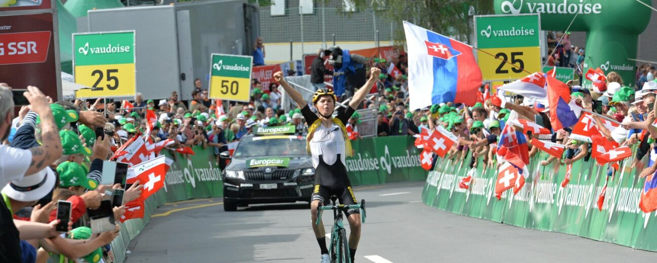 C’est en début d’après midi que les coureurs s’élancent et une échappée de 25 coureurs va prendre le large. On y trouve Daniel Oss (Bora Hansgrohe), Bert-Jan Lindeman et Antwan Tolhoek (Team Jumbo-Visma), Rui Costa et Alexander Kristoff (UAE Team Emirates), Luis Mas (Movistar), Robert Stannard et Matteo Trentin (Mitchelton Scott), Nikias Arndt (Sunweb), Kevin Geniets (Groupama FDJ), Matej Mohoric (Barhain Merida), Jasper Stuyven (Trek-Segafredo), François Bidard et Aurélien Paret-Peintre (Ag2r La Mondiale), Thomas Scully (EF Education First), Stan Dewulf et Tosh Van der Sande (Lotto Soudal), Patrick Bevin (CCC Team), Nathan Haas (Team Katusha Alpecin), Ben King (Team Dimension Data), Pim Ligthart (Total Direct Energie), Colin Joyce (Rally UHC Cycling), Gian Friesecke, Claudio Imhof et Simon Pellaud (Swiss Cycling). Un groupe très conséquent donc qui a toutes les chances de se jouer la victoire d’étape quand on connaît les qualités de ces coureurs, d’autant plus que presque toutes les équipes sont représentées. Seule la Deceunink-Quick Step roule en tête de peloton et l’écart est de 4 minutes à 45km de l’arrivée.