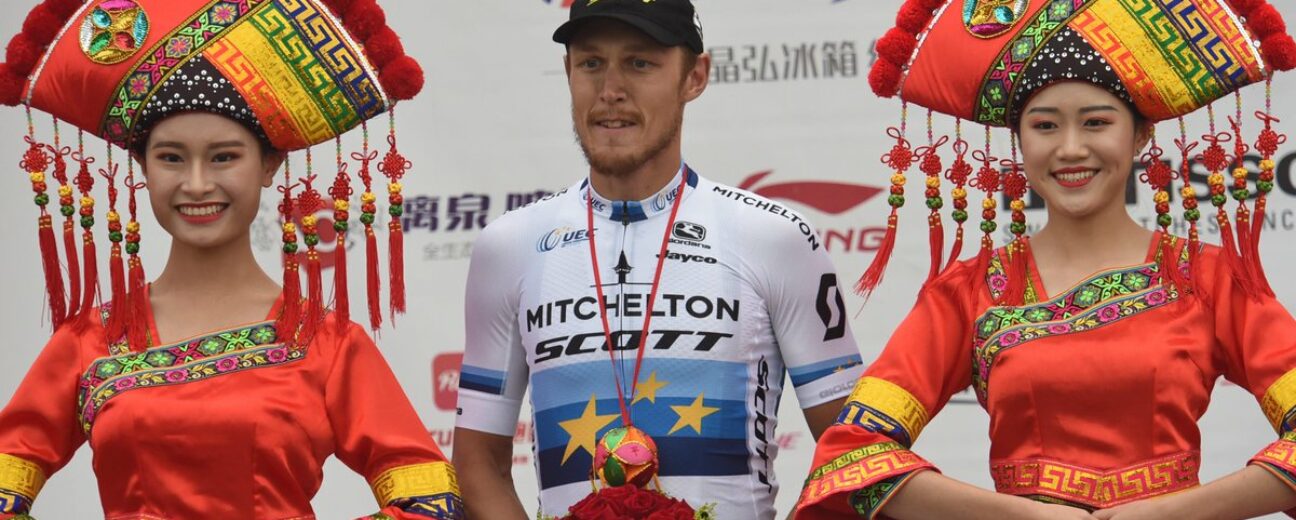 Après avoir réalisé plusieurs top dix sur les différents sprints de ce Tour du Guangxi, Matteo Trentin (Mitchelton Scott) a enfin trouvé l’ouverture, dans la nuit de vendredi à samedi, pour remporter la 5ème étape de l’épreuve Wolrd Tour en Chine. Sacré champion d’Europe le 12 août dernier à Glasgow, l’Italien n’avait pas encore remporté la moindre course avec sa tunique blanche, bleue et étoilée. Avant de terminer la saison 2018, il a réussi à s’imposer. Une première également avec sa formation Mitchelton Scott. S’il avait levé les bras sur les championnats d’Europe, il portait alors le maillot de la Squadra Azzura. « Je suis vraiment content parce que c’est ma première victoire avec l’équipe et la première également avec le maillot de champion d’Europe avant la fin de la saison » a-t-il expliqué à l’issue de l’étape.