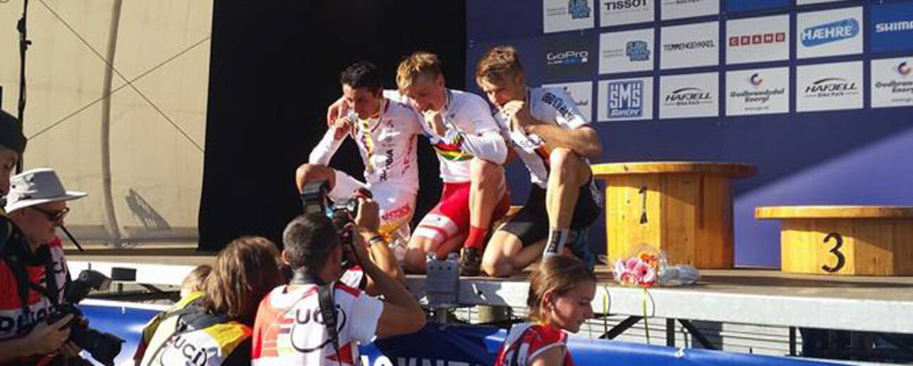 L’identité du futur champion du monde ne fait déjà plus de doute au bout du premier tour au terme duquel il possède déjà 30 secondes sur le Colombien Egan Bernal. Les Sud-Américains qui dominent déjà la montagne sur route devaient naturellement un jour s’investir dans le VTT… Mais Bernal devra attendre un peu pour s’installer sur la première marche d’un podium. Bien loin derrière Simon Andreassen, le Colombien s’accroche à sa deuxième place, mais la menace de Luca Schwarzbauer plane sur lui. L’Allemand, vice-champion d’Europe sur ses terres à Saint-Wendel, réalise un départ poussif avant de se reprendre. Il sait qu’il lui sera impossible de rentrer sur le Danois, mais l’argent reste accessible. En dépit des efforts qu’il réalise pour boucher le trou qui le sépare de Bernal (44 secondes à la mi-parcours), le Teuton devra se contenter du bronze puisqu’il échoue à une seconde du Colombien.