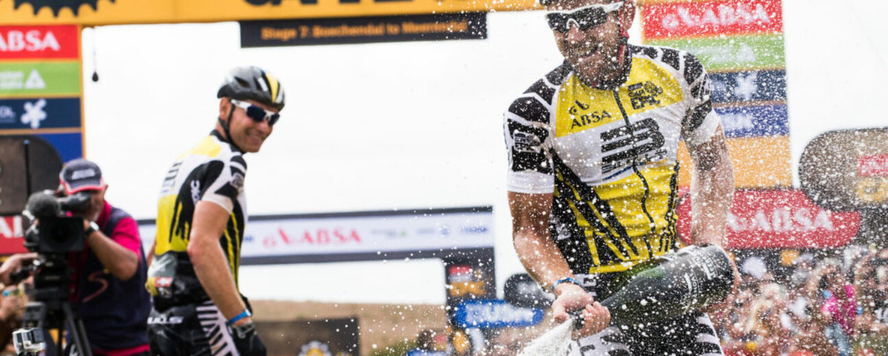 Cape Epic. Ils l’ont fait ! D’un bout à l’autre, Karl Platt et Urs Huber (Team Bulls) auront mené le classement général de la Cape Epic pour y inscrire leur nom au palmarès, une cinquième fois en douze ans s’agissant de l’Allemand, qui égale ainsi le record établi avant lui par Christoph Sauser ! Les jeux étant faits sur la septième et dernière étape, la paire germano-suisse a levé un peu le pied pour permettre aux duos qui ne s’étaient pas encore exprimés de repartir avec un accessit d’Afrique du Sud. C’est ce que seront parvenus à faire Manuel Fumic et Henrique Avancini (Cannondale Factory Racing), lauréats de l’étape finale à Meerendal Wine Estate. « C’était notre dernière chance d’y parvenir, souligne Manuel Fumic. Et on était plus déterminés que jamais. Il n’y a rien de mieux que de gagner l’étape finale devant la foule qui se rassemble pour le dernier jour. »