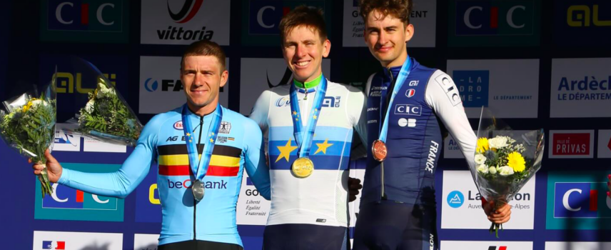 Une semaine après son titre mondial, Tadej Pogačar est devenu champion d'Europe devant Remco Evenepoel et Paul Seixas, qui monte sur le podium à domicile.