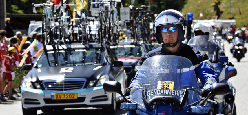 Sur les routes du Tour, coureurs et suiveurs bénéficient d'une véritable escorte présidentielle. La Garde Républicaine joue les anges gardiens.