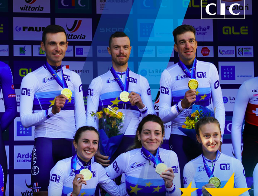 L’Équipe de France est devenue, ce jeudi, championne d’Europe du contre-la-montre relais mixte. Alors que Bruno Armirail, Rémi Cavagna et Thibault Guernalec ont passé le relais en 2ᵉ position derrière l’Italie de Filippo Ganna, Juliette Labous, Cédrine Kerbaol et Marion Borras ont comblé le retard pour offrir le titre européen à la France. L’Italie, +07″, et la Suisse, +40″, complètent le podium. Vice-champions du monde il y a quelques jours à Kigali, l’équipe de France est championne d’Europe du relais mixte pour la deuxième fois après 2023.