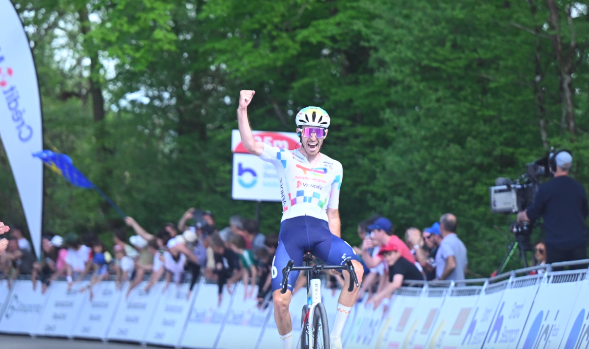 Jordan Jegat (TotalEnergies) a remporté, ce vendredi, la Classic Grand Besançon Doubs, cinquième manche de la FDJ United Series 2026. Dès les premiers pourcentages de l’ascension finale de la côte de la Malate, l’équipe Décathlon CMA CGM durcit avec Matthew Riccitello et Léo Bisiaux, qui n’arrivent pas à se défaire de Jordan Jegat. Le leader de la TotalEnergies fait la diffèrence dans le dernier kilomètre et s’impose au sommet de Montfaucon pour son premier dossard de la saison, lui qui a été contrarié par des douleurs au genou cet hiver. Il décroche sa première victoire chez les professionnels devant Matthew Riccitello et Léo Bisiaux.