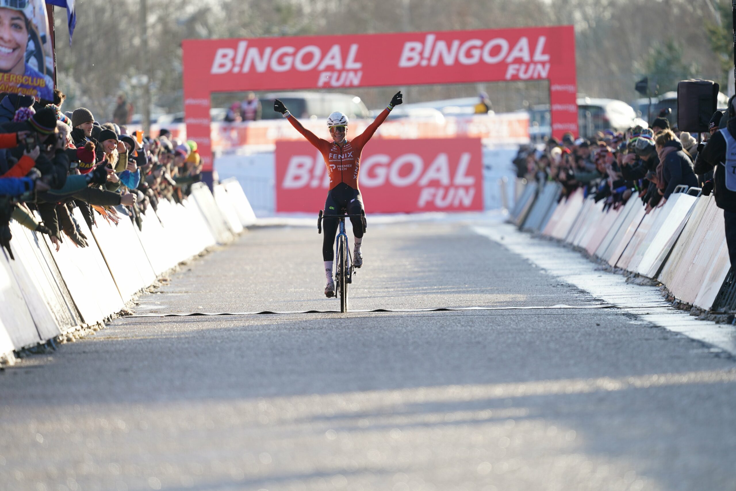 La neuvième manche de la Coupe du monde de Cyclo-cross avait lieu ce dimanche à Zonhoven en Belgique. Chez les femmes, dès le premier tour, les trois favorites Lucinda Brand (Baloise Glowi Lions), Puck Pieterse (Fenix – Premier Tech) et Ceylin del Carmen Alvarado (Fenix – Premier Tech) chutent dans le sable au même endroit. Au terme d’une belle bataille, Alvarado met fin à la domination de Lucinda Brand, qui restait sur treize victoires consécutives. Brand prend la deuxième place et reste solide leader du classement général. Puck Pieterse complète le podium. Amandine Fouquenet (Pauwels Sauzen – Altez Industriebouw Cycling Team) termine au pied du podium.