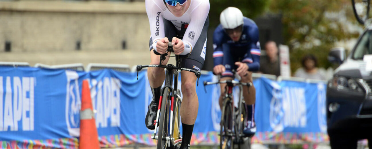 Pour endosser les premiers maillots arc-en-ciel frappés d’un chronomètre sur le torse dans une cité de Richmond aux conditions climatiques changeantes, il aura s’agit de partir de bonne heure. On a vu hier comme ce critère a été déterminant pour l’Américaine Chloe Dygert puis le Danois Mads-Würtz Schmidt. Il aura encore été primordial ce matin dans la capitale de la Virginie, où le temps de référence établi par le dix-huitième coureur à se présenter sur la ligne d’arrivée, l’Allemand Leo Appelt, aura tenu pendant plus de deux heures et le passage des trente-neuf coureurs invités à dévaler la rampe de lancement par la suite.
