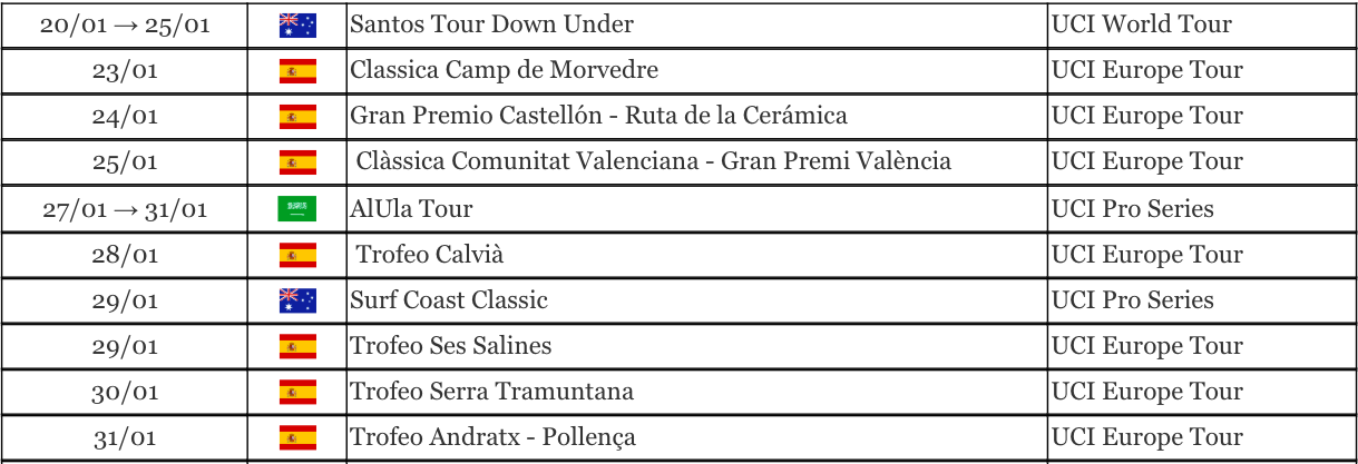 Alors que la saison débute le 20 janvier à l’occasion du Tour Down Under, voici le calendrier des courses cyclistes de janvier 2026.