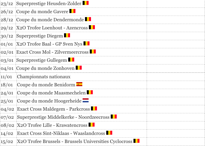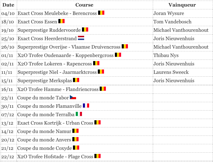 Le calendrier de cyclo-cross 2025-2026