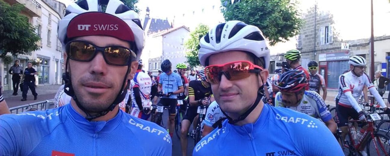 – (on a même adoré) La belle histoire (et le sens de l’humour) des vainqueurs en catégorie « tandem », sur le parcours de 113 km (La Claude Séguy). Ce tandem était constitué d’un pilote dans la force de l’âge et de son équipier non-voyant, plus âgé. Quand on demande au pilote ce qui le pousse à emmener un non voyant, il nous apprend que ce dernier était son instructeur dans les catégories jeunes avant de perdre la vue. Il estime donc que c’est un juste retour d’ascenseur. Et au coéquipier de surenchérir qu’il lui fait une « confiance aveugle » dans les descentes !! Deux gars qui voient les choses d’aussi loin, ça ne peut que nous faire de l’œil !