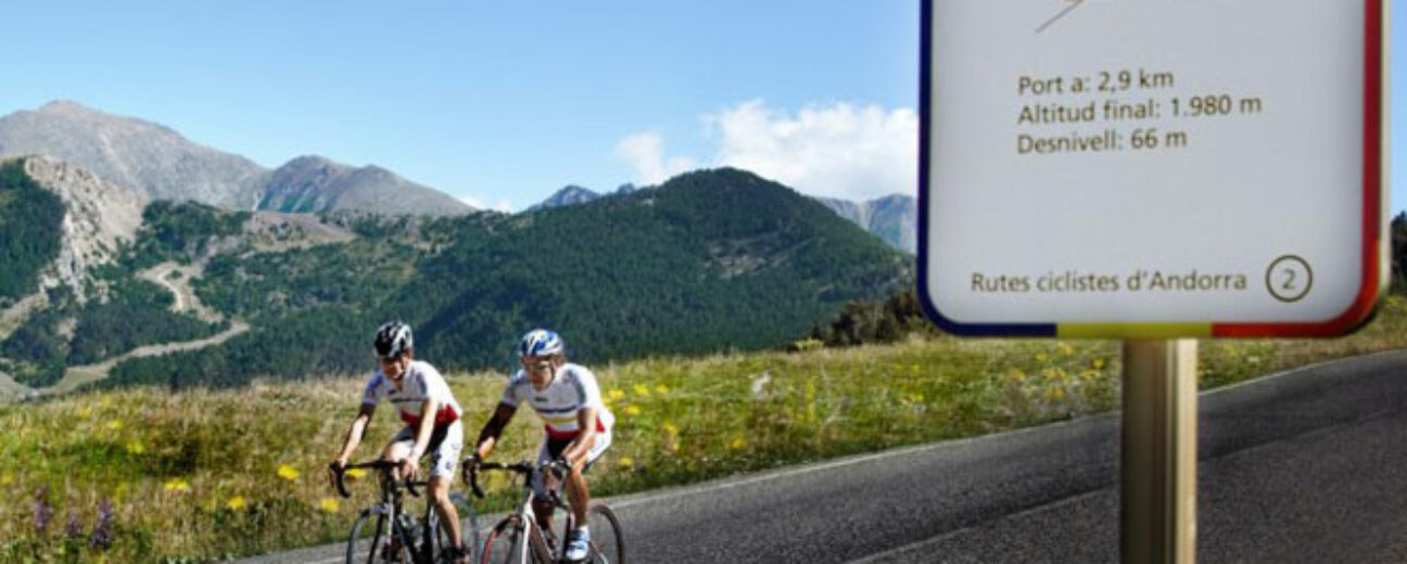Andorre. En 2010, le gouvernement de la Principauté d’Andorre a fédéré les acteurs du cyclisme andorran et les professionnels du tourisme afin de développer et diversifier son offre d’activités de pleine nature. Découvrir le territoire andorran à vélo est aujourd’hui possible grâce à la création de circuits cyclotouristiques balisés et étudiés, afin que dénivelés et longueurs des parcours permettent à tous de profiter du cyclisme de montagne. Avec ses cols, faux-plats et autres descentes, les atouts montagne ne manquent pas, permettant à tous de vivre les mêmes expériences que les pros. Sillonnant près de 200 kilomètres, du nord au sud et à travers trois vallées, les vingt circuits, balisés par une signalisation spécifique, permettent aux amoureux de la petite reine d’affronter vingt cols (dénivelés moyens de 8 %) à une altitude moyenne de 2000 mètres. Chaque étape est indiquée par un panneau de départ, et l’on informe de la progression tous les kilomètres jusqu’à la fin de l’itinéraire, permettant ainsi aux mordus de vélo de pratiquer leur sport dans des conditions optimales.