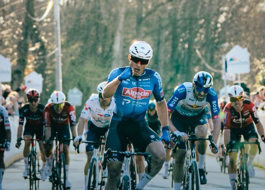 Jasper Philipsen (Alpecin – Premier Tech) a remporté, ce mercredi, la 80ème édition de Danilith Nokere Koerse. À 14 kilomètres de l’arrivée, Alec Segaert (Bahrain Victorious) passe à l’offensive dans un secteur pavé. Le Belge prend rapidement 30″ d’avance sur le peloton mais il se fait reprendre cruellement à 50 mètres de la ligne, dans le long faux plat montant de l’arrivée. Malgré un changement de chaussure dans le final, Jasper Philipsen surgit et s’impose pour la première fois de la saison. Il devance Jordi Meeus (Red Bull Bora-Hansgrohe) et Juan Sebastian Molano (UAE Team Emirates – XRG). Émilien Jeannière (TotalEnergies) prend la 4ème place.