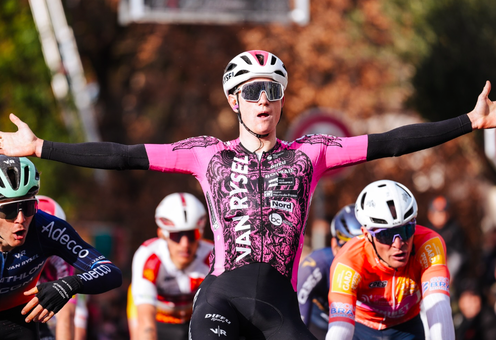 Joppe Heremans (Van Rysel Roubaix) a remporté, ce samedi, la 4ème étape de l’Étoile de Bessèges 2026. Les derniers rescapés de l’échappée Valentin Retailleau (TotalEnergies) et Clément Davy (Nice Métropole Côte d’Azur) ont été repris dans les derniers hectomètres. Au terme d’un sprint en bosse, Joppe Heremans crée la surprise et s’impose devant Lukas Kubis (Unibet Rose Rockets), qui conforte sa place de leader du classement général avant le CLM final ce dimanche. Paul Lapeira (Dcéathlon CMA CGM) complète le podium.
