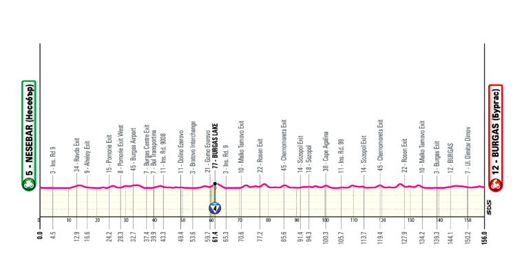 Étape plate. Départ de la ville historique de Nessebar, colonie grecque du VIe siècle avant J.-C. Arrivée à Burgas, station balnéaire sur la mer Noire. Sprint au programme pour le premier maillot rose.