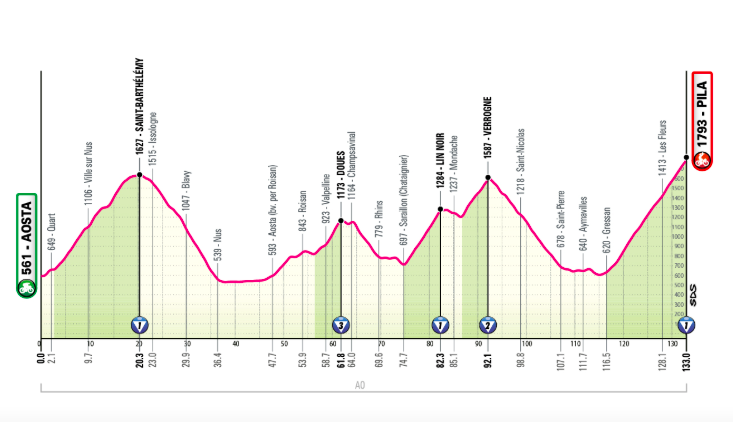 14ᵉ étape : Aosta → Pila (133 km)