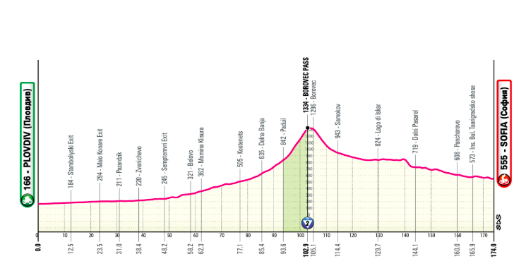 Étape avec une longue ascension (Borovets) relativement roulante, à mi-parcours, avant un sprint probable à Sofia.
