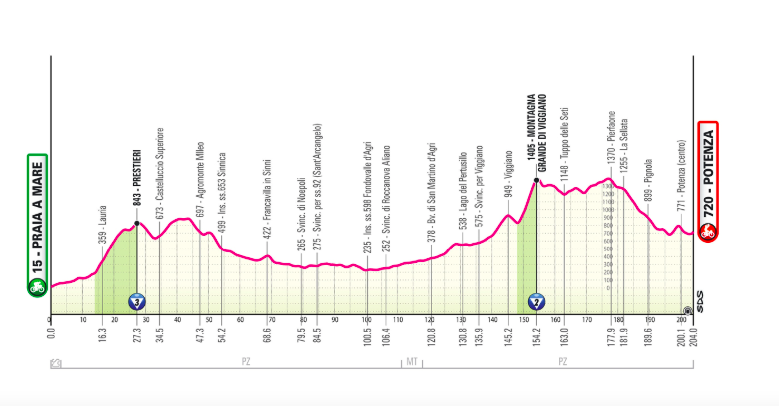 Étape rythmée avec de nombreuses ascensions et un final exigeant en montée. Le parcours traverse le Parco Nazionale del Pollino. Final très similaire à celui de 2022 (Bouwman).