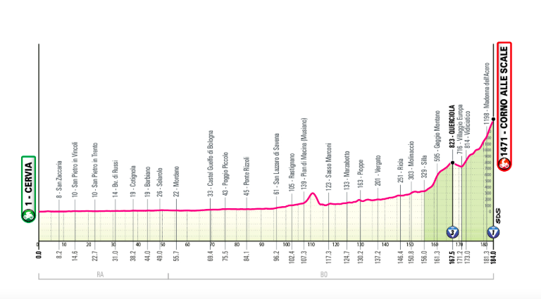 9ᵉ étape : Cervia → Corno alle Scale (184 km)