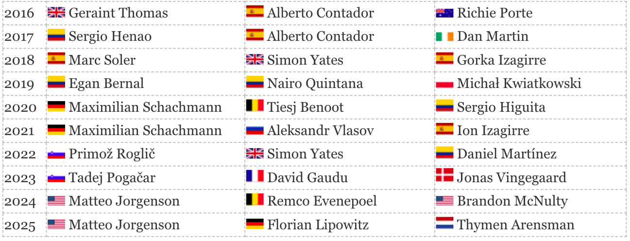 Le palmarès de Paris-Nice