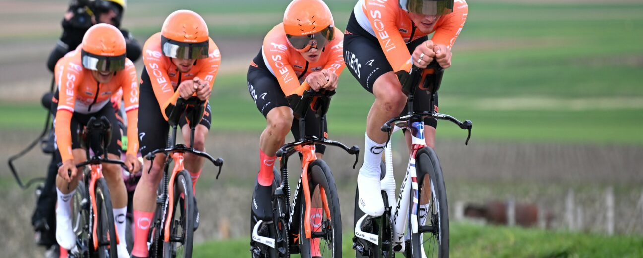 INEOS Grenadiers birla el triunfo en la crono por equipos a Lidl-Trek por solo 2″ y las bonificaciones del lunes sirven al español para vestirse de amarillo.