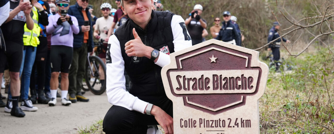 Triple vainqueur des Strade Bianche, Tadej Pogacar a désormais un secteur à son nom. Le Colle Pinzuto arbore désormais le nom du Slovène.